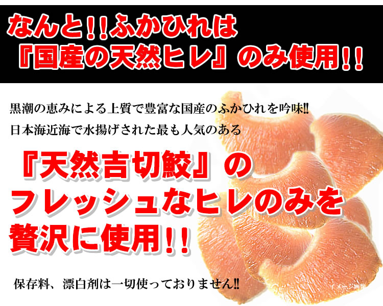 ●日本近海で水揚げされた、フレッシュなヒレのみを使用!